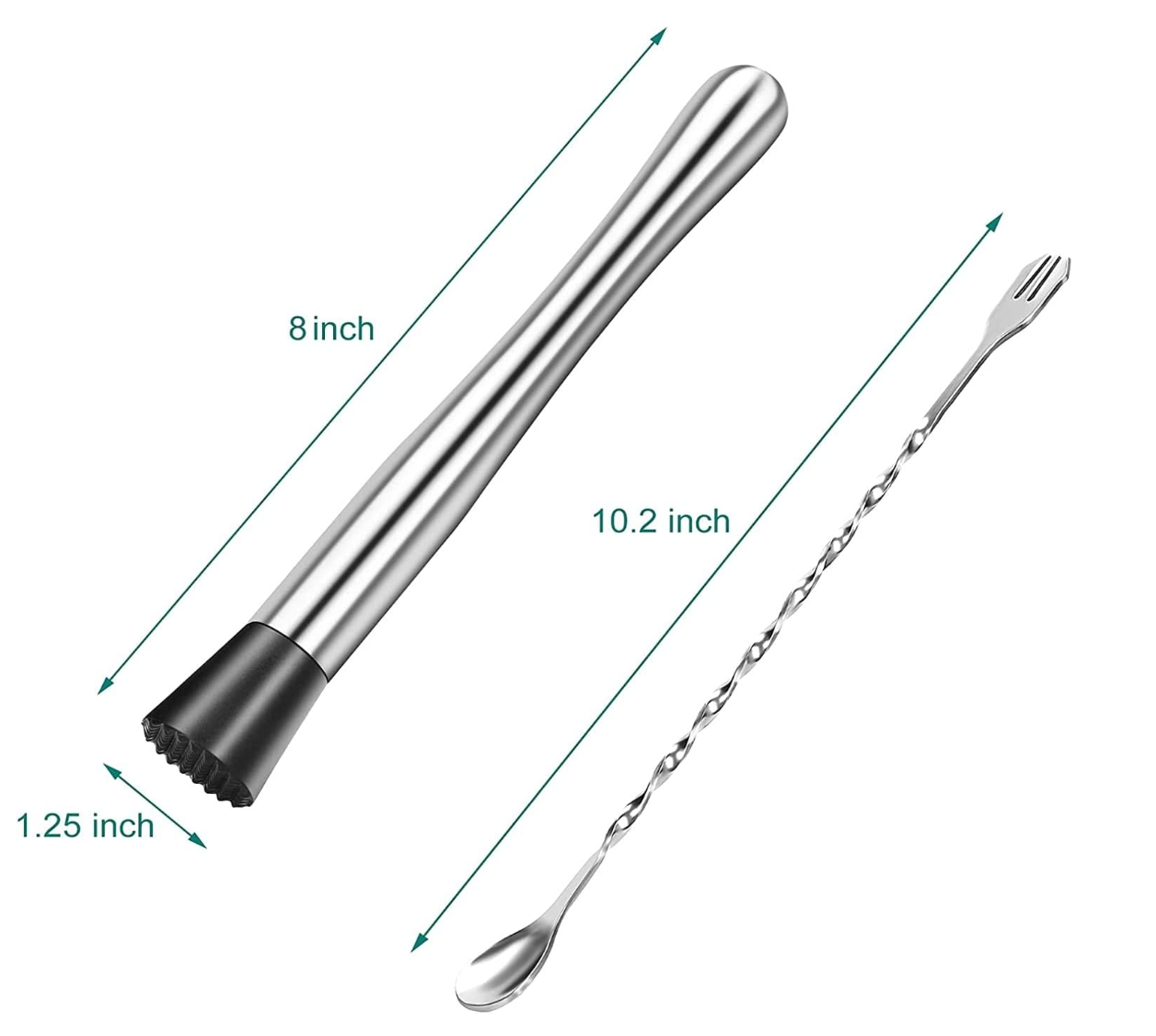 Optimal Dimensions: The muddler measures 22cm in length and the mixing spoon 26cm, making them versatile for both tall and short glasses.