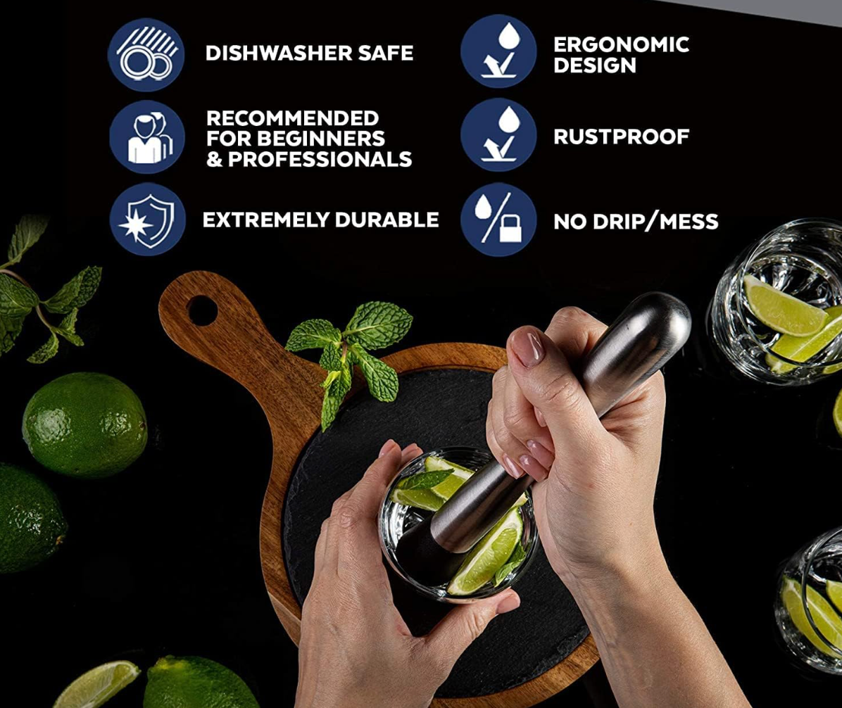 Versatile Use: Perfect for muddling fruits, lemons, spices, and mint. Suitable for use in bars, cafes, restaurants, or home settings.